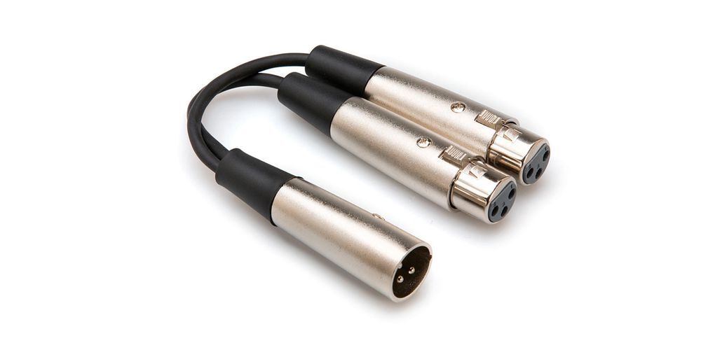 Y Cable, Dual XLR3F to XLR3M, 18 in | Designed to connect two XLR outputs to one XLR input | May be used to connect two microphones to one channel on a mixing console when a second channel is unavailable | XLR connectors with internal strain relief for rugged reliability | Oxygen-Free Copper (OFC) conductors for enhanced signal clarity | OFC spiral shields for effective EMI and RFI rejection and flexibility | Lifetime warranty