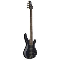 The TRBX605 5-string bass guitar features an Alder body with Flamed Maple construction and an active/passive pre-amp design that delivers the flexibility and sheer tonal quality to sculpt the perfect sound for your music. The pickups have a quad pole-piece design and Alnico magnets that give them the power to drive the active circuit and the sensitivity and subtlety to capture every nuance in passive mode. High-quality gold plated parts are used for key signal chain contacts providing increased conductivity. It also has a 5-piece Maple/Mahogany neck, battery alert LED, high-mass die-cast bridge, straight string-pull from nut to machine head, and metal plate-mounted jack. Translucent Black finish.
