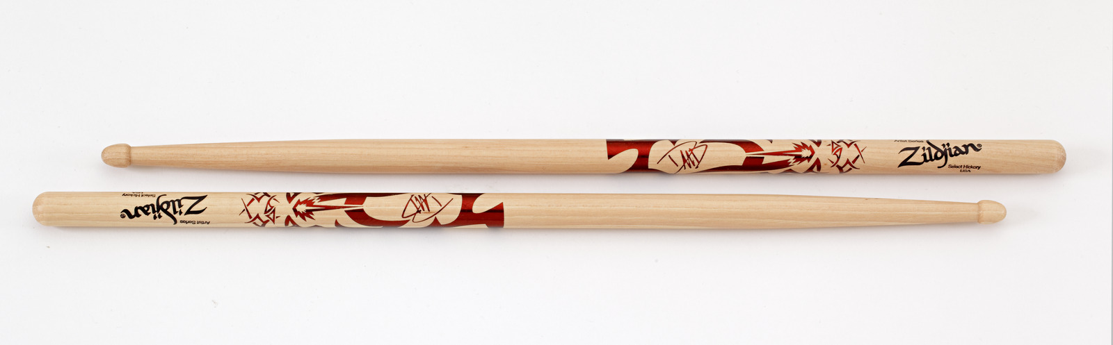 The Dave Grohl Artist Series Drumstick model prominently features metallic, two-color artwork of Grohl’s famous tattoos on both of his arms. This model also features large dimensions, a length of 16 3/4” and diameter of 0.600” for extra power and reach as well as an acorn-shaped tip for sound clarity. Crafted from 100% U.S. Select Hickory, the preferred wood for drum set sticks, its overall design is especially well suited for Rock applications where power, rebound, and durability are critical.