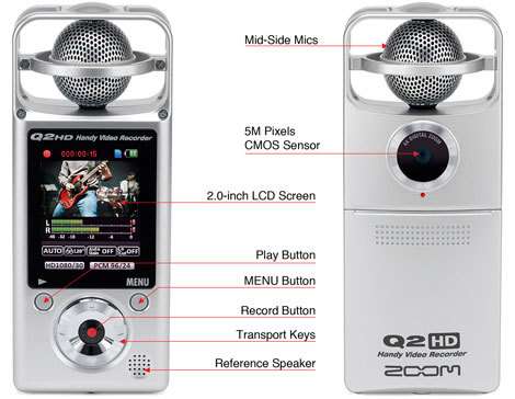 ZOOM Q2HD Handy Video Recorder promises to play, capture and stream, all in "HD audio and video."Portable Video and Audio Recorder with Built-in Mid-Side Stereo Microphone System, LCD Screen, Onboard Speaker, Editing and Uploading Software, and SD Slot
