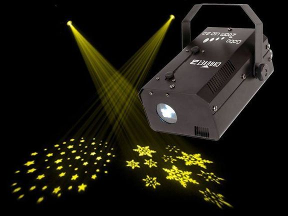 Thrill event guests with customized logos, icons and other designs with Gobo Zoom 2, a high-powered custom gobo projector with a punchy 70 W LED. Proper positioning of gobos is easy with an innovative manual rotation knob that allows fast indexing without gobo removal. Gobo Zoom 2 comes with 10 popular holiday gobos and manual zoom for short-throw or long-throw applications, making it versatile and convenient. The convenience doesn’t stop there. Most functions are accessible with an optional IRC-6 remote and set-up time can be reduced by power linking multiple units.- High-powered custom gobo projector with a punchy 70 W LED