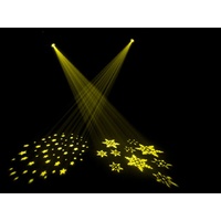 • DMX channels: 2 • DMX connectors: 3-pin • Rotating gobo size: 28.6 mm outside, 26 mm image, 1 mm max thickness • Light source: 15 W (4 A) white LED 50,000 hrs • Zoom angle: 18° - 26° • Illuminance: 1,027 lux @ 2 m • Input voltage: Auto-ranging 100-240 VAC 50/60 Hz • Power and current: 38 W, 0.2 A @ 230 V 50 Hz • Weight: 4.4 lbs (2 kg) • Size: 9 x 7.3 x 7.2 in (229 x 185 x 183 mm)