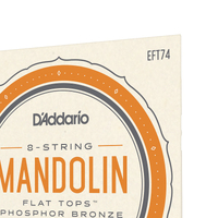 D'Addario EFT74 Flat Top mandolin strings are round wound, then precision ground, leaving the outer surface smooth and "semi-flat." This produces a smooth, flattened playing surface, but does not sacrifice the warm tone and sustain associated with phosphor bronze strings. Flat Tops are excellent for recording and greatly reduce finger noise.D'Addario mandolin strings are trusted by legends like David Grisman, Ricky Skaggs, Ronnie McCoury, Doyle Lawson, Rhonda Vincent, Mike Marshall, Adam Steffey, and more, for their natural acoustic tone and reliable performance. They are made from the highest quality plain steel, stainless steel, nickel plated steel and phosphor bronze and are available in a wide variety of gauges.