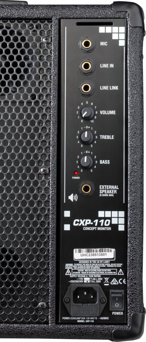 The CXP-110 is an ultra-compact, active enclosure that may be used as a stage monitor or on a speaker stand. Finished in a tough vinyl covering with metal corners with rubber feet and a kick-proof steel grill, the CXP-110 will deliver gig after gig. Designed and engineered in Great Britain, the CXP-110 delivers 130 watts of power and is equipped with a 10" woofer. With a balanced Mic input, ¼ jack Line input , two-band EQ and Master Volume. The CXP-110 has everything you need and nothing you don’t in a live situation. The CXP-110 includes a Line Link socket for connecting to an additional active enclosure or monitor. The CXP-110 is fitted with a 35mm pole stand fitting allowing the unit to be used on a speaker stand, as a side fill monitor or front of house speaker when desired.